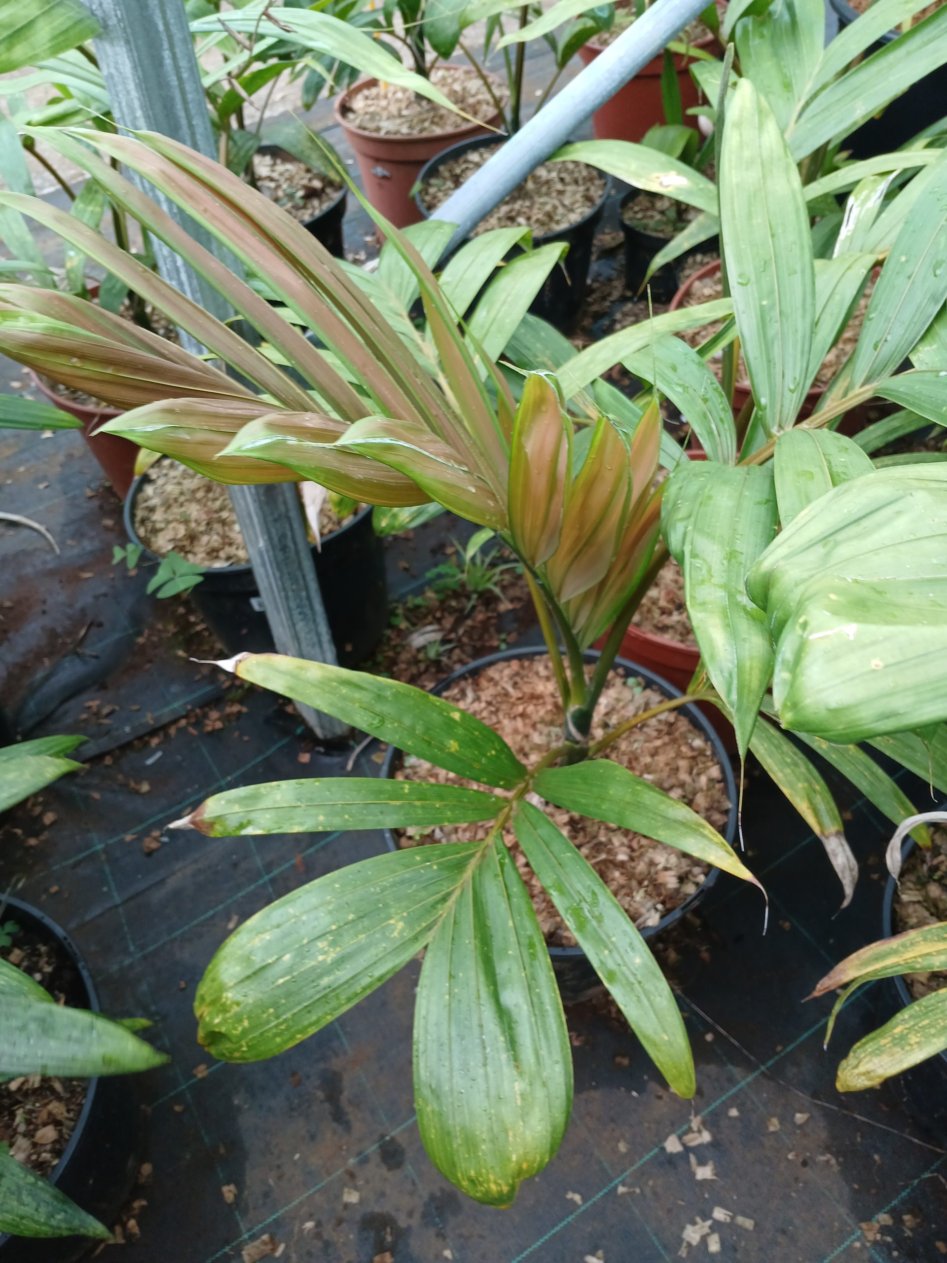 Reconnaissable à sa nouvelle feuille rouge vif, qui contraste magnifiquement dans le paysage, ce palmier attire tous les regards. Les feuilles deviennent vertes avec l’âge. Son tronc peut atteindre 20 m de haut. Pot 12 L – Environ 60 cm